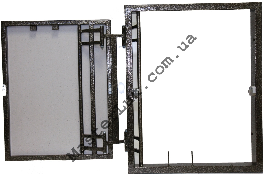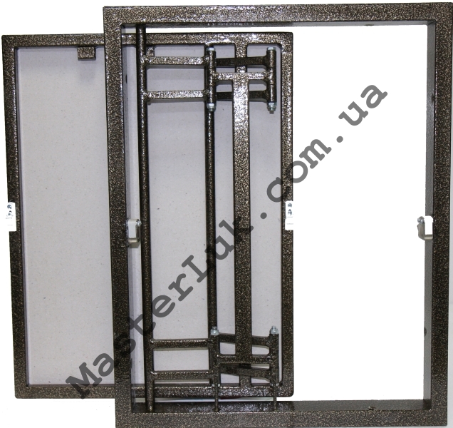 Рама и петля люка изготовлены из стали при помощи аргонно-дуговой сварки и покрыты порошковой краской. Такое покрытие гарантирует высокую степень коррозийной стойкости. На раме дверцы укреплен влагостойкий ГВЛ (гипсо-волокнистый лист) толщиной 10 мм для наклейки облицовочной плитки.