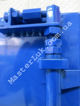 Потім регулювальними гайками (2) відрегулювати висоту положення дверцята. Послаблюючи гайку 1 і підгортаючи гайку 2 ми переміщаємо дверцята люка вгору.