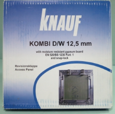 Люки під фарбування і шпалери Кнауф Kombi DW універсальні в застосуванні. Їх використовують як в стінових так і стельових конструкціях. Як заповнювач кришки застосовують вологостійкий гіпсокартон. Особливості: висока міцність і надійність при невеликій ціні.