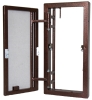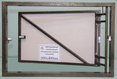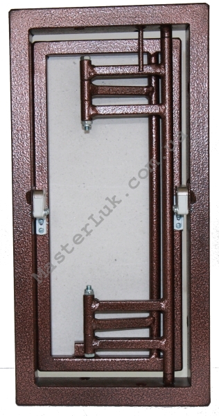 Рама люка виготовляється зі сталевої труби 40 х20 мм, а дверцята люка зі сталевої труби перетином 15 х15 мм. Глибина люка 50 мм.