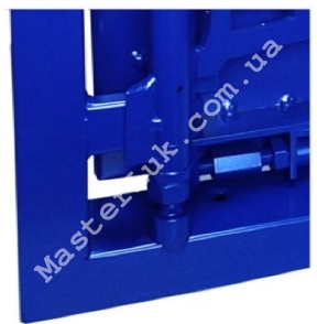 3.) Вертикальні елементи - осі петель виконані з круглого профілю збільшеного перетину, а самі петлі виконані методом лазерної порізки з надміцної сталі товщиною 5 мм. 4.), що обертаються елементи петель виконані за технологією «конус в конусі», що виключає можливість провисання дверцята люка, а також забезпечує її легке відкриття / закриття. 5.) Спеціальна фурнітура люка - засувки, а також їх розташування забезпечують легке відкриття / закриття дверцят люка натисненням всього лише на одну сторону люка (сторону, де розташовані петлі)