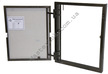 Дверца люка покрывается специальной влагостойкой панелью, состоящей из исключительно экологически чистых компонентов, не содержащих вредные вещества, такие, как: асбест, смолы и формальдегиды. Антисептическое свойство материалов, составляющих панель, предотвращает появление плесени и грибков. Стальная сварная петля выдерживает большие нагрузки на дверцу люка под плитку и занимает совсем немного места в ревизионном проёме. Качественные нажимные замки обеспечивают легкое открытие, плотное прилегание дверцы люка даже с любыми видами тяжелой плитки и керамогранита.